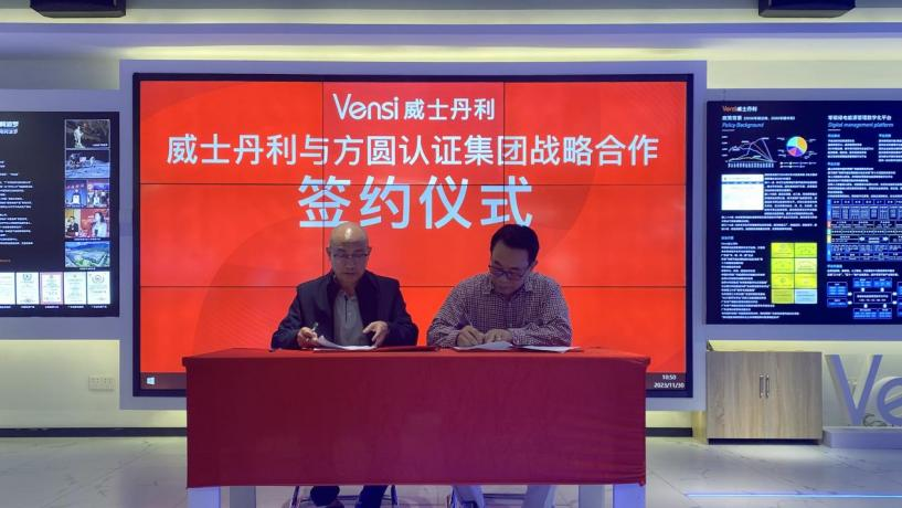 11月30日,方圓標(biāo)志認(rèn)證集團(tuán)廣東有限公司(以下簡(jiǎn)稱(chēng)“方圓廣東公司”)與廣州市威斯丹利智能科技有限公司綠色低碳戰(zhàn)略合作簽約儀式在廣州舉行。方圓廣東公司常務(wù)副總經(jīng)理熊飛彪,廣州市威斯丹利智能科技有限公司董事長(zhǎng)陳志雄代表雙方簽署戰(zhàn)略合作協(xié)議。